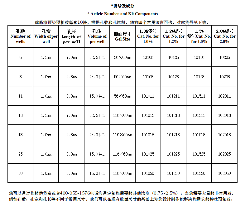 56×60mm瓊脂糖預制膠101050101011